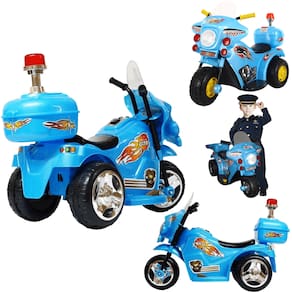 O Triciclo Elétrica Motorcycle Polícia 6V da Shiny Toys está disponível nas versões preta, amarela, rosa, branca, azul e vermelha. É perfeito para presentear meninos e meninas!
