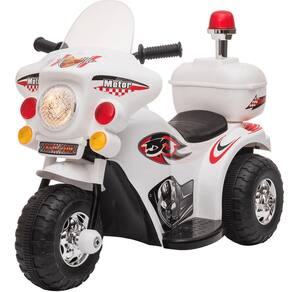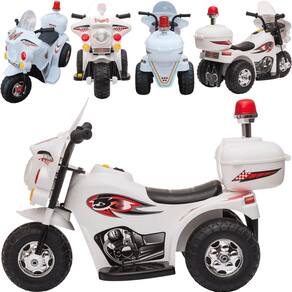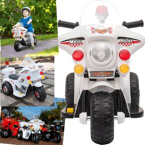O Triciclo Elétrica Motorcycle Polícia 6V da Shiny Toys está disponível nas versões preta, amarela, rosa, branca, azul e vermelha. É perfeito para presentear meninos e meninas!