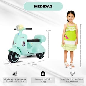 Descrição: A Moto Elétrica Infantil Scooter Avespa Verde Tiffany 3212 da Uni Toys é uma escolha excepcional para presentear crianças a partir de 2 anos, oferecendo não apenas diversão, mas também contribuindo para o desenvolvimento motor dos pequenos. Com um design atrativo e características pensadas para o entretenimento seguro das crianças, esta scooter se destaca como uma opção de lazer completa.