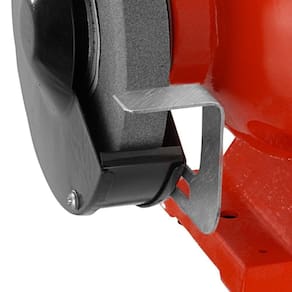 Possui pés de borracha que reduzem a vibração, rolamentos blindados, botão liga/desliga com capa de proteção. Além de base de apoio da peça ajustável para garantir ainda mais segurança no seu dia a dia. O equipamento inclui dois rebolos: 1 para desbaste (granulometria A-36) e 1 para afiação (granulometria A-60). Além disso, possui protetores laterais nos rebolos e frontais para faíscas, conforme requisitos da NR-12, o que proporciona maior segurança para o usuário.