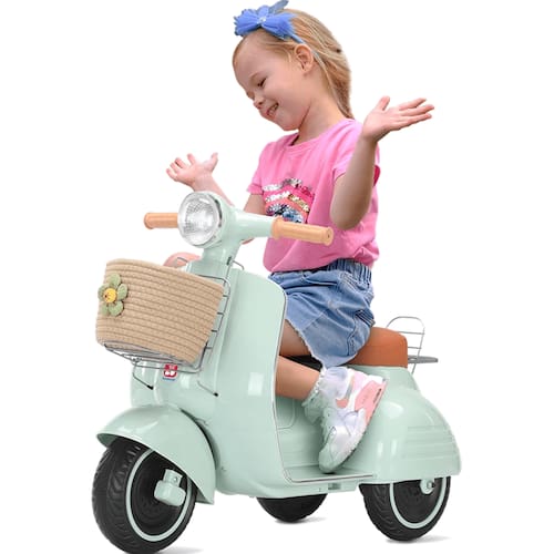 A Scooter Elétrica Lambreta Vespa 6V da Bandeirante está disponível na cor Menta, com um charmoso estilo retrô. É uma opção perfeita para presentear meninos e meninas!