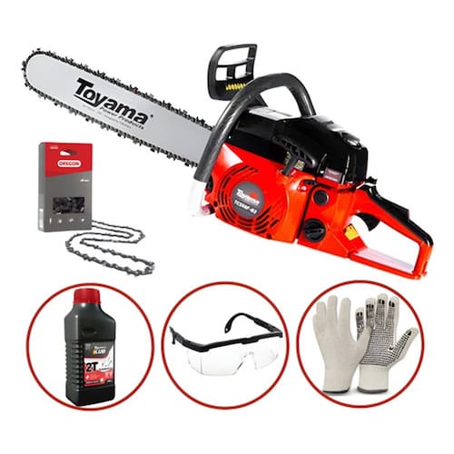 A Motosserra Toyama TCS58F-GII-20SN foi desenvolvida para o uso frequente. É equipada com motor de 54,5 cc e 3,22 HP de potência, sabre de 20 polegadas de ponta dura e corrente Oregon. Ideal para atender proprietários de sítios e pequenas fazendas que buscam a qualidade de um equipamento, com baixo custo de aquisição. A máquina é leve e de fácil manuseio, seu excelente sistema antivibração, aprimora a qualidade e o rendimento de corte. Indicada para projetos agropecuários em podas e cortes de árvores de médios diâmetros.