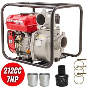 Motobomba Kawashima GW300 é equipada com motor à gasolina 4 tempos de 212cc, possui diâmetros de sucção/saída de 3" ;(76mm), com altura de de 26m e vazão maxima de 60m/h, com partida manual. ;A Motobomba é portátil, econômica e fácil de operar. Indicada para o uso agrícola e urbano, ideal para a transferência de água limpa. Pode ser usada no abastecimento de caixas de água, cisternas e irrigação.