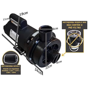 Motobomba Centrifuga HMC-2 Para Piscinas, Duchas, Cascatas e Hidromassagem 1/2cv - Com Capacitor - Bivolt (110v/220v) - Monofásico