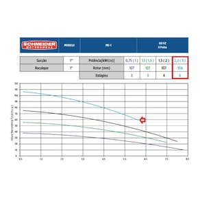 Especificações Técnicas: Modelo: ME-AL 1630 Potência: 3 cv Tensão:127/254 Volts Fase: Monofásica - com capacitor Diâmetro Sucção: 1 Polegada Diâmetro Recalque: 1 Polegada Pressão máxima sem vazão:8 m.c.a Altura máxima sucção:108 m.c.a Diâmetro Rotor: 4 (107mm)/ 2 (100mm) Número Estágios: 6 Bocais com rosca BSP Rotor fechado de alumínio - Selo Buna Eixo de aço inox AISI-420 Selo mecânico constituído de aço inox AISI-304, buna N, grafite e cerâmica (ME-AL) e Viton Lateral de entrada, divisão, corpo de saída e intermediário de ferro fundido Motor elétrico IP-21, 2 polos, 60 Hz (até 3 cv)