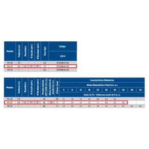Especificações Técnicas: Caracol de ferro fundido Rotor de bronze Selo mecânico constituído de aço inox AISI-304, buna N, grafite e cerâmica Bocal de sucção e recalque de 1 com rosca BSP Temperatura máxima do líquido bombeado: 60C Vazão de 0,4 a 2,7 m3/h Altura manométrica total de 3 a 42 m.c.a. Motor elétrico com proteção IP-54, 2 polos, 60Hz, com protetor térmico Pressão Máxima sem Vazão: 48 m.c.a. Diâmetro Rotor: 71 mm Potência: 3/4 cv Tensão:220 Volts Fase: Monofásica