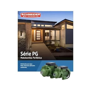 Especificações Técnicas: Modelo: PG-10 - Motor Monofásico com Capacitor e Proteção Térmica Tipo: Periférica Fase: Monofásica com Capacitor Voltagem: 220V Potência: 1CV Diâmetro Sucção: 1 Polegada Diâmetro Recalque: 1 Polegada Pressão máxima sem vazão: 50 m.c.a Altura máxima de sucção: 8 m.c.a Rotor: 71 mm Rotor em Bronze Selo mecânico constituído de aço inox AISI-304, buna N, grafite e cerâmica Bocal de sucção e recalque de 1 com rosca BSP Motor elétrico monofásico, com proteção IP-44, 2 polos, 60 Hz e com protetor térmico