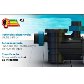 Esta motobomba acompanha 2 uniões para encaixe no tubo de 50 mm; Ela tem sua ligação elétrica monofásica 220 volts qualquer duvida consulte-nos no campo de perguntas Compativel com filtros da sodramar : fm36 para outros filtros consulte-nos no campo de perguntas Para circulação de água, a sodramar, oferece o que há de mais avançado em tecnologia de motobombas, purificando a água e priorizando a qualidade do lazer e a saúde dos usuários. Constituída de materiais resistentes e à prova de corrosão, as motobombas têm potência que variam de 1/4cv até 1/2cv, com alta vazão, atuando com eficiência e segurança na piscina. Informações gerais: Comprimento = 45,2 cm Largura = 18 cm Altura = 24 cm Pressão mca x m/h = 2 mca = 12 m/h 4 mca = 11,6 m/h 6 mca = 9,2 m/h 8 mca = 7,2 m/h Motobomba segue com pré filtro e cesto coletor; Volume do cesto 750 ml; Carcaça em plástico resistente, visor transparente e eixo em aço carbono; Classifcação a no inmetro; Motor aberto ip-21; Auto escorvante, funciona até 1 metro acima do nível da água; Produto possui de 12 meses direto com a fábrica a sodramar possui assitência técnica em todo território nacional Marca: Não Informado Ean: 7890003243046
