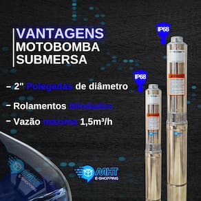 Motobomba Submersa 2" Lepono ou Claw 1/2 Hp 2 Fios 220v ESPECIFICAÇÕES: • VAZÃO Máxima 1.300 L/H. • POTÊNCIAS: 1/2 HP monofásico. • Altura máxima de 55 MCA ( Tabela de altura x vazão na foto do anuncio ). • DIÂMETRO: 2'' (Para Poço com diâmetro acima de 60 mm). • Bocal de recalque com rosca 3/4" polegada. • Controlador Interno ( Não utiliza painel/Box ). APLICAÇÕES: • Captação de água potável em poços com diâmetro mínimo de 2" • Abastecimento de residências, chácaras, sítios e indústrias • Rebaixamento do lençol freático CARACTERISTICAS DO MOTOR: - Enrolamento em cobre - Protetor térmico - Grau de proteção: IP68 - Classe de isolação: B - Lubrificante do motor: Óleo dielétrico isolante (utilizado nos ramos alimentícios e farmacêuticos) - Selo mecânico em grafite cerâmica buna. ALTURA MANOMETRICA X VAZÃO: - 10 M.C.A - 1.300 L/H - 15 M.C.A - 1.200 L/H - 20 M.C.A - 1.100 L/H - 25 M.C.A - 1.000 L/H - 30 M.C.A - 900 L/H - 35 M.C.A - 800 L/H - 40 M.C.A - 600 L/H - 45 M.C.A - 500 L/H - 50 M.C.A - 100 L/H - Corpo da bomba em aço inox AISI 304 - Temperatura máxima do líquido: 35 °C - Bocal de recalque em bronze e intermediário do motor em aço inox AISI 304 - Rotores flutuantes - ph do líquido: 6 - 8 - Capacidade máxima de areia na água: 40 gr/m³ - Comprimento do cabo de energia: 1,5 metros - Motobomba constituida em aço inox, bronze e termoplástico - Suporta flutuação de tensão Utilizada principalmente para a captação de água em poços artesianos de água limpa e isenta de sólidos em suspensão. Indicada para o abastecimento doméstico e pequenos prédios. Utilizada em sistema de irrigação de pequeno porte. A motobomba multiestágio permite atingir grandes pressões sem sofrer perdas consideráveis na vazão. A Motobomba Submersa Dongyin 2" é perfeita para atender suas necessidades de captação de água de forma eficiente e confiável. Com sua capacidade de trabalhar em poços artesianos de água limpa e livre de impurezas, ela é ideal para abastecer residências e pequenos edifícios. Além disso, essa motobomba é uma excelente escolha para sistemas de irrigação de pequeno porte, garantindo alta pressão sem comprometer o fluxo de água. Não perca tempo e adquira agora a Motobomba Submersa Lepono 2", a solução completa para suas demandas de água.