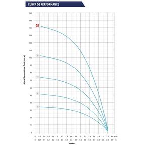 DETALHES TÉCNICOS - Especificações de acoplagem com motor de acordo com a Norma NEMA; - Rotor de fluxo radial; - Bocal de saída 1 com rosca BSP; - Vazão: 0,2 a 3,2 m/h; - Altura Manométrica: 5 a 145 m.c.a.; - Motor elétrico com proteção IP-68, 2 polos, 60Hz; - Motobomba 2 Fios com capacitor Interno; - Tensão 127v - Potência de 1,5cv; - Temperatura máxima do líquido bombeado: 35C.