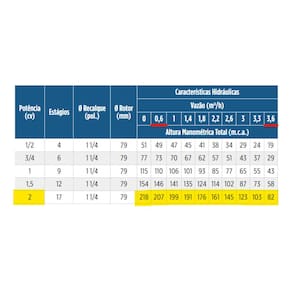 • Submergência mínima recomendada: 6 metros abaixo do Nível Dinâmico;