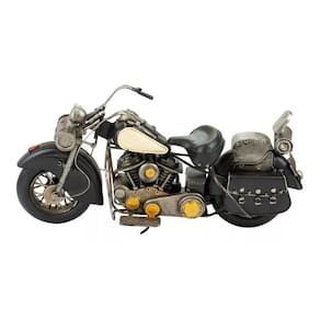 Enfeite decorativo em forma de uma motocicleta preta com 20 x 40 x 12 cm de dimensão, detalhes e cores muito realista. Material: metal; Atenção: este produto tem apenas função decorativa, não é um brinquedo e nem uma motocicleta de verdade!