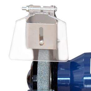 Equipamento com proteção de acrílico articulável para os dois rebolos (um rebolo para desbaste e outro para acabamento);