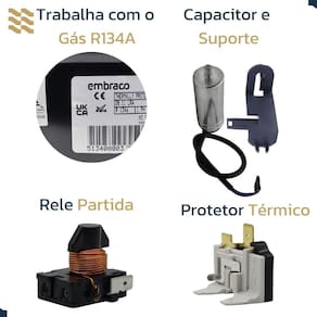 01 motor compressor 01 rele partida 01 protetor térmico 01 caixa de proteção do rele e protetor