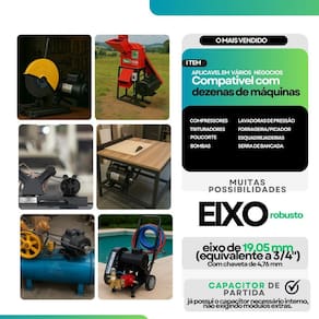 3. É necessário usar chave de partida Não. O motor é de partida direta e já acompanha o capacitor. Pode ser ligado diretamente à rede elétrica, com proteção adequada no disjuntor.