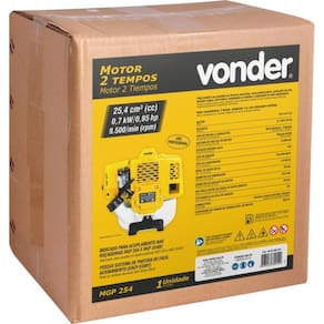 Marca: Nove54Conteúdo da embalagem: 1 Motor.Destaques e diferenciais:Motor monocilíndrico, 2 tempos, refrigerado a ar, com embreagem centrífuga. Possui sistema de partida de fácil acionamento Easy-start , proporcionando maior suavidade no acionamento do retrátil ao dar a partida. Motor de que pode também ser acoplado em diversos acessórios, como pulverizadores, perfurador de solo, bombas dágua, entre outros, respeitando as medidas e capacidade de cada equipamento. No abastecimento, colocar gasolina misturada com óleo 2 tempos de boa qualidade, na proporção 25:1 40 ml de óleo para 1 litro de gasolina .Dicas de uso:Indicado para acoplamento nas roçadeiras modelos RGP 2540C e RGP 254 VONDER.Detalhes Técnicos:Linha: Profissional Tipo de motor a combustão: Monocilíndrico - 2 tempos Motor: 25,4 cm cc Potência: 0,7 kW/0,9 hp Sistema de partida do motor: Manual retrátil Capacidade do tanque de combustível do motor: 650 ml Combustível: Gasolina comum com óleo 2 tempos Dimensões do motor L x C x A : 239,4 mm x 157,4 mm x 245,8 mm Tipo de ignição: CDI