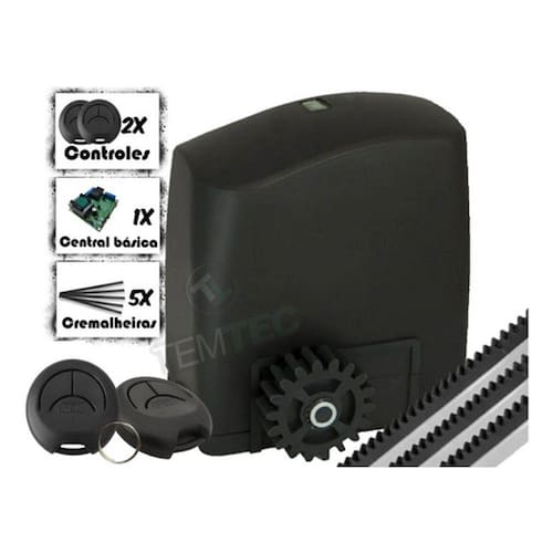kit automatizador para portões deslizantes, potência de 1/5cv, suporta portões de até 300Kg. Produto desenvolvido com a mais alta tecnologia, o projeto e a construção da máquina passam por um rigoroso processo, entregando a você o produto da mais alta qualidade.