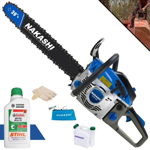 A Motosserra à Gasolina Nakashi NCS550 é uma máquina moderna, com potência e durabilidade para garantir de maneira eficiente a aplicação em todos os trabalhos de corte. A motosserra Nakashi é ideal para trabalhos de maior intensidade, é excepcionalmente leve, ergonômica e de fácil manuseio, ideal para corte e desdobra de madeiras, no corte e poda de galhos e árvores, paisagismo, grandes manutenções e carpintaria. Destaca-se por ser uma máquina de arranque rápido, de manutenção prática e fácil de operar.