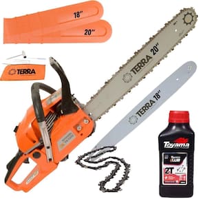 Motosserra Terra MT520 À Gasolina 2T 2,5HP 52cc Com Sabres de 18'' e Sabre de 20'' + Óleo Toyama FG50 500ml 2T