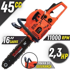 A Motosserra à Gasolina Vulcan Trent VSL450 é uma máquina com potência e durabilidade para garantir de maneira eficiente a aplicação em todos os trabalhos de corte. A motosserra VSL450 possui motor 2 tempos com 45cc e 2,3HP para todos os tipos de serviços.