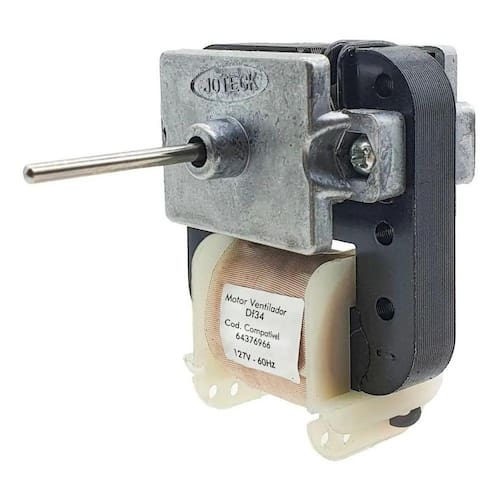 Motor ventilador para geladeira electrolux Código do produto: 64376966 Compatível com os modelos:Df34Df36Df37 Df38aDf38xDf39Df40aDfw35Dw39x Especificações técnicasMarca: joteckCabo com 2 conectoresSem sensorTensão: 127v