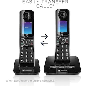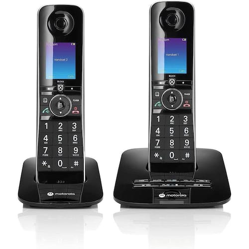 Sistema de telefone sem fio Motorola Voice D8712 com 2 aparelhos digitais + Bluetooth para celular, secretária eletrônica, bloqueio de chamadas - preto