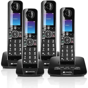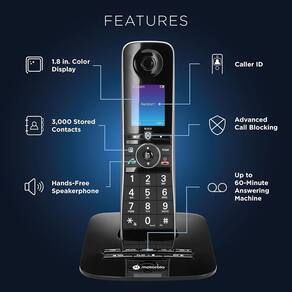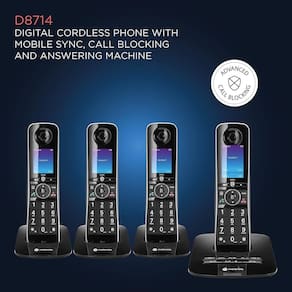 Telefone comercial ou residencial D8714 é um sistema telefônico sem fio preto com secretária eletrônica integrada, ideal para escritórios e uso doméstico Conversas com viva-voz O combo de telefone sem fio possui viva-voz com viva-voz para que você possa receber chamadas sem um monofone e realizar várias tarefas durante reuniões ou conversando com amigos Agenda telefônica de múltiplos contatos O sistema telefônico comporta até 1.000 entradas e inclui uma secretária eletrônica integrada para receber mensagens quando você não estiver disponível Sincronizar com dispositivo móvel O telefone oferece bloqueio de chamadas para até 1.000 números e possui Bluetooth que permite conectar até dois 2 dispositivos móveis para sincronizar agendas telefônicas Inclui - Quatro 4 aparelhos sem fio com base, oito 8 baterias, quatro 4 adaptadores de energia, guia de configuração Modelo: D8714 Cor: Preto dos EUA Homologação Anatel: 109062214103