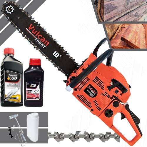As Motosserras à Gasolina Vulcan Trent, são máquinas modernas, com potência e durabilidade para garantir de maneira eficiente a aplicação em todos os trabalhos de corte. Como a motosserra Vulcan VSL-550 que é ideal para trabalhos de menor intensidade, de uso ocasional, eficiente no corte e poda de galhos e árvores, corte de lenha, paisagismo e carpintaria.Ficha Técnica: Marca: VULCAN TRENTModelo: VSL550Motor: 2 temposPotência: 3HpCilindrada: 55CCRotação Máxima: 11.000 RPMRotação na lenta: 3.000 RPMSabre: VULCAN 18”Corrente: 32 DentesPasso: 3/8”Bitola: 1,5mmIgnição: EletrônicaArranque: Manual com mola retrátilAmortecedores: SimCarburador: Membranas de alta eficiênciaCombustível: Gasolina com Óleo – Proporção 25:1Tanque do Combustível: 520mlTanque do Óleo: 260mlConsumo: aproximadamente 1L por horaAutonomia: Aproximadamente 30 minPeso do produto: 6,750kgPeso com embalagem: 7,650kgDimensões do Produto: 29 x 26 x 84Itens e acessórios na(s) caixa(s): 1 Sabre 18", Corrente 32 Dentes, 1 Dosador de Combustível, 1 Lima, 1 Jogo de ChavesAcessorios Extras (Cortesia da Loja): 1 Óleo Lubrificante de Corrente Toyama VG150 de 1 Litro + 1 Óleo Lubrificante de Motor 2T Toyama Lub de 500ml.Garantia de fábrica: 6 meses contra defeito de fabricação. Ean: 7893787123771