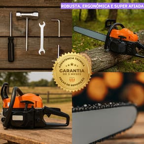 Facilite seu trabalho no jardim ou no campo com a Motosserra Ishikawa 62cc. Perfeita para cortar madeira de todos os tipos, podar árvores e cuidar da vegetação com menos esforço e mais agilidade.