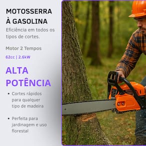 Com motor 2 tempos de 2.6kW, essa motosserra entrega potência e desempenho impressionantes, garantindo resultados profissionais em pouco tempo.