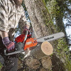 Motosserra a gasolina, Tekna CS58S18AC, robusta, potente, conforto, alto desempenho, cortes precisos, corrente Oregon, sabre Tekna, bomba de óleo automática, freio de segurança, sistema anti-vibratório, corte de árvores, lenha, marcenaria, poda de árvores.