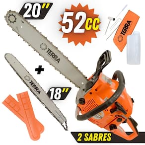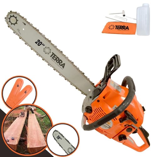 Motosserra Terra MT520 À Gasolina 2T 2,5HP 52cc Com Sabres de 18'' e Sabre de 20''