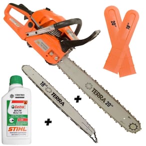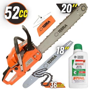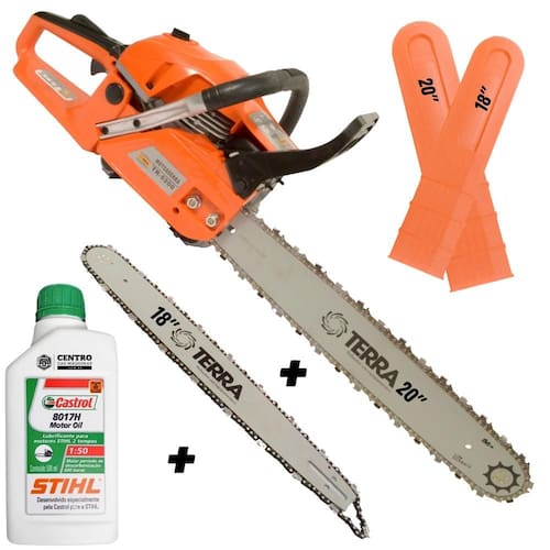Motosserra Terra MT520 À Gasolina 2T 2,5HP 52cc Com Sabres de 18'' e 20'' + Óleo Castrol Stihl 500ml