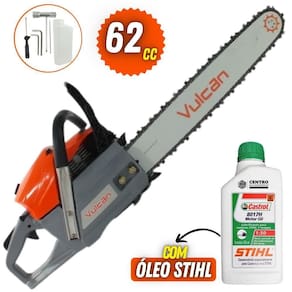 As Motosserras à Gasolina Vulcan Trent, são máquinas modernas, com potência e durabilidade para garantir de maneira eficiente a aplicação em todos os trabalhos de corte. Como a motosserra VS620 é ideal para trabalhos de maior intensidade, de uso no corte de árvores e galhos. Também pode ser utilizada em outras atividades como corte de lenha, paisagismo, derrubada de árvores de grande porte, carpintaria e serviços de longo prazo em empreitada de pinos e eucalipto. A VS620 possui um sistema de partida fácil, com menos esforço, (easy start) que aumenta a vida útil do equipamento.