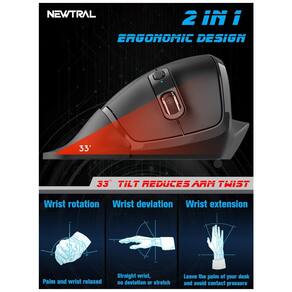 PREVENIR O DESCONFORTO DOS MÚSCULOS DA MÃO O mouse ergonômico Newtral reduz a pronação da mão e o desconforto muscular comprovado pelo professor Erik Peper dos EUA em 2015. Os dados mostram que o mouse NEWTRAL reduz o EMG do músculo da mão em até 31. CONFORTO ÓTIMO A forma patenteada permite que a palma da mão segure o mouse com formato de semi punho relaxado em vez de formato de palma reto ou redondo com desconforto extra. PALMA MAGNÉTICA E DESTACÁVEL, SUPORTE PARA O FIO Punho preciso Você pode obter o máximo controle preciso ancorando o mouse com o dedo mindinho e o pulso ao jogar, desenhando sem suporte para a palma da mão Ergo Grip Você pode obter o máximo conforto usando o suporte magnético da palma para uso no escritório. PROGRAME O MOUSE DE ACORDO COM SUAS NECESSIDADES Você tem permissão para alterar a função de todos os 6 botões instalando o driver do mouse NEWTRAL. DPI ADJUSTALBE Dpi 1000, 1500, 2000, 2500, 3200, 4800. USB com fio, plug and play sem driver necessário se você não quiser alterar a função do botão Marca: Não Informado