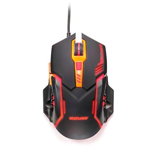 Material: Plástico Sensor Óptico Comprimento do cabo: 150cm Número de portas USB: 1 Alimentação USB Compatibilidade: Windows Luzes de LED decorativas Efeito de Luz LED laranja Alcança até 2400 DPI Descanso de dedo ergonômico Estabilidade durante jogos Conteúdo da embalagem: Mouse Gamer Multilaser