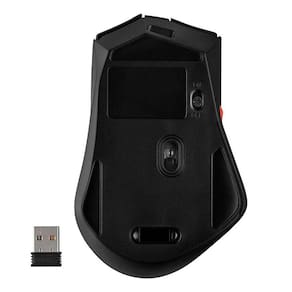 Construído com acabamento emborrachado preto, ele tem conexão sem fio através de receptor USB, é óptico e recarregável, com bateria de lítio 400ma.H. Preciso nos movimentos, ele conta com 6 botões, entre um scroll central e 4 laterais, para avançar, voltar páginas, etc...