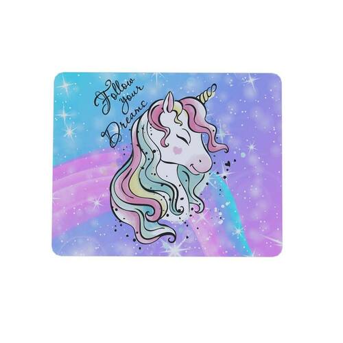 Mouse pad Criativo Retangular 22x18 Unicórnio Sonhos Cor: Roxo Mouse pad Retangular Unicórnio Sonhos é um presente criativo com estampa em tecido e o verso em espuma. Ideal para quem ama esse animal místico, misterioso e encantador. CARACTERÍSTICAS - Este mouse pad possui base em espuma e revestimento em poliéster. - Tamanho: 22cm x 18cm Fotos ilustrativas, as cores e estampas poderão sofrer leve alteração. Marca: Não Informado