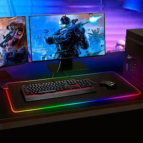 Mouse Pad Gamer 80x30cm Rgb 7 Cores Grande Mouse Pad Gamer RGB foi projetado para fornecer à você um deslizar suave e um poder de agilidade preciso com o mouse. Obtenha o melhor resultado no campo de batalha dos seus jogos.
