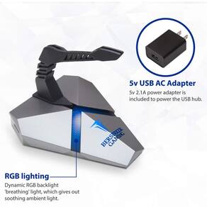 Suporte elástico para mouse LOKI Gaming - Luzes LED RGB - Hub USB 3.0 de 4 portas com alimentação ativa - Slot para leitor de cartão micro SD - PC; Mac; Linux