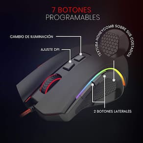 Mouse para jogos programável de alta precisão Redragon M602A-RGB GRIFFIN com 7 modos de luz de fundo RGB O Redragon GRIFFIN M602A-RGB é um mouse para jogos com fio altamente personalizável e com design soberbo. O mouse foi projetado para profissionais de jogos de eSports que exigem o melhor desempenho. O mouse para jogos é elegante e confortável graças a um design ergonômico suave e contornado e oferece movimentos suaves e precisos devido ao seu sensor de alta precisão. Isso torna o mouse perfeito para sessões de jogo de longa duração, oferecendo o máximo de conforto e suporte. Ideal para jogos FPS, o Redragon Griffin possui um sensor óptico de jogo de 7200 DPI com rastreamento avançado e detecção de movimento de alta velocidade para controle preciso. Oferecendo DPI e troca de perfil com o indicador DPI Color para que você sempre faça as jogadas certas e possa se concentrar em seu jogo. Características: * 7 botões programáveis otimizados (total de 8 botões) * Roda de rolagem tátil antiderrapante * até 7200 DPI (800/1200/1600/2400/7200 DPI ajustável pelo usuário) * 7 modos de cor RGB, efeitos de iluminação e respiração * Indicador de cor DPI * Aceleração de 10 g * Almofadas duráveis de TEFLON para movimentos suaves e precisos * Cabo de fibra trançada de alta velocidade de 6 pés e 3 mm e com filtro magnético de baixa passagem para reduzir a interferência eletromagnética * Conector USB livre de corrosão banhado a ouro para uma conexão confiável * Produto dimensões 5,x3,2 x 1,65 polegadas, peso do produto: 9,86 onças * Requisitos do sistema PC com porta USB Windows 10, Windows 8, Windows 7, Windows Vista e Windows XP * Suporta Plug Play e download de software adicional, disponível na página de download da Redragonusa Conteúdo da embalagem: Manual do usuário do mouse para jogos M602A-RGB Griffin Gaming Mouse - MOUSE PARA JOGOS COM FIO; construído para computadores de jogos - Ergonomic Redragon M602-RGB “Griffin” RGB Mouse retroiluminado para PC para jogos de até 7200 DPI (800/1200/1600/2400/7200 DPI ajustável pelo usuário), aceleração de 10G. O sensor de alta precisão oferece extrema precisão, enquanto os microinterruptores Gaming Grade garantem longevidade, maior durabilidade e extrema capacidade de resposta, oferecendo uma vantagem ainda maior sobre a concorrência - MOUSE PARA PC PROGRAMÁVEL MMO COM LUZ DE FUNDO RGB; 7 botões MMO programáveis pelo usuário, 5 perfis de memória, cada um com opção distinta de cor de LED para identificação rápida. 7 modos de luz de fundo diferentes. (A luz de fundo pode ser desativada) O mouse para jogos Redragon M602-RGB oferece personalização total para seu computador de jogos e laptop para jogos - MOUSE ERGONÔMICO PARA JOGADORES; proporcionando uma experiência extremamente confortável e precisa para jogos de computador. O formato ergonômico do mouse para jogos para PC Redragon M602-RGB foi construído para proporcionar conforto, cabe naturalmente na mão. Os botões são ajustados para reduzir a fadiga dos cliques - CARACTERÍSTICAS DE MOUSE PARA JOGOS DE PC DE ÚLTIMA GERAÇÃO; O mouse Redragon M602-RGB possui ajuste de peso integrado para o equilíbrio certo, roda de rolagem antiderrapante, almofadas de TEFLON macias e duráveis para o máximo controle de jogos. 7 botões programáveis. Total de 8 botões. O mouse funciona muito bem com mousepads e teclados Redragon Gaming. Vem com cabo de fibra trançada de alta velocidade de 6 pés e 3 mm de resistência e um conector USB banhado a ouro para uma conexão confiável - COMPATIBILIDADE COM MOUSE PARA JOGOS PARA PC: Windows 10, Windows 8, Windows 7, Windows Vista ou Windows XP, suporte limitado ao Mac OS Funciona bem com todas as principais marcas de computadores para jogos e laptops para jogos