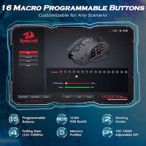 Funções especificadas: 1. 16K DPI - Sensibilidade, transmissão e feedback rápidos, mais rápido e mais eficiente. Movimento suave, sem atraso, sem atraso, aproveite o jogo. 2. Suporte totalmente programável para edição macro – 19 botões podem ser personalizáveis de acordo com sua preferência para atender às suas diferentes necessidades. Até mesmo a função de teclas de combinação se torna realidade clicando nos botões laterais. 3. Retroiluminação RGB segura – 16,8 milhões de combinações de cores podem ser escolhidas, e você pode ajustar a iluminação por software, mesmo uma única cor, ou desligá-la, apenas para sua necessidade. Como mudar o modo de trabalho Existem dois modos de trabalho para o mouse. Você pode alterar o modo de trabalho com o botão de modo na parte inferior do mouse. O valor dpi, efeitos de luz de fundo e funções de botão podem ser definidos via software para cada modo de trabalho. - ?Mouse para jogos de alto desempenho?UP 16000 DPI oferece alta sensibilidade e movimentos suavizantes. DPI ajustável (100-16000) e taxa de sondagem (125Hz-1000Hz) garantem que este mouse profissional para jogos seja adequado para jogos ou trabalho diário. A aceleração de 40G anexada dá a você uma vantagem maior sobre sua concorrência - ?Real personalizável?Você pode remapear os 16 botões por meio de edição macro para atender aos seus hábitos de uso sob diferentes condições. Equipado com 5 perfis de memória para salvar suas configurações e 2 modos de trabalho que podem ser alternados com um clique. O mouse Redragon MMO é personalizável para qualquer cenário, esteja sempre um passo à frente dos outros - ?Equilíbrio e peso ao seu controle?Personalize para sua vantagem. Organize até oito pesos removíveis de 2,4 gramas dentro do mouse para ajuste personalizado de peso e equilíbrio, proporcionando a melhor sensação para cada jogo - ?Mouse para jogos RGB real? 16,8 milhões de combinações de cores trazem uma experiência de jogo imersiva. 4 modos de iluminação podem ser facilmente alternados para alimentar diferentes jogos, e você também pode ajustar a iluminação do mouse de acordo com sua preferência usando o software (baixe na redragonzone) - ?Design exclusivo e confortável?Design ergonômico com material amigo da pele, jogos longos sem fadiga ou dor. Os 12 botões laterais podem ser remapeados por meio de edição macro, tornando as funções de combinação de teclado realizadas por meio de cliques de botão, permitindo que você ganhe de forma eficiente em qualquer cenário de jogo
