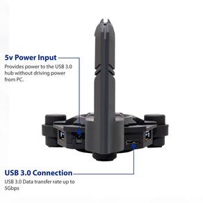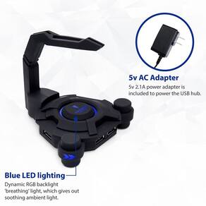 Narfi Gaming Mouse Bungee Stand - Blue LED - 4 Port USB 3.0 Hub with Active Power - AC 5V Power Adapter Is Included - PC; Mac; Linux