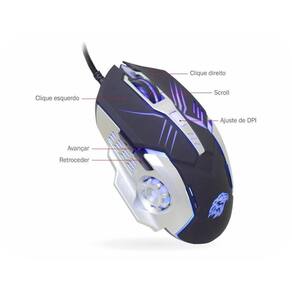 CARACTERÍSTICA:03 níveis de resolução de DPI (1000-1600-2400) com botão de ajuste (DPI)03 LEDs com mudança automática de cores, possibilitando inúmeras combinaçõesLed: Azul, Vermelho, Roxo e RosaDesign ergonômico e confortávelMouse óptico de 06 botõesSuperfície preta fosca com detalhes em prataLaterais texturizadas com apoio para dedosScroll antiderrapante emborrachadoCabo: USBCompatível com os sistemas operacionais: Windows 98/2000/ME/XP/Vista/7/8/10Cor do Mouse: preto e prata