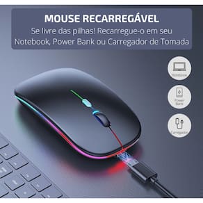 O Mouse sem fio Wireless é um acessório auxiliar perfeito para você navegar com mais facilidade e conforto. Com um design elegante e ergonômico que se encaixa confortavelmente a sua mão. Ideal para uso doméstico ou empresarial.Econômico com sua bateria recarregável embutida, fácil de carregar sem a necessidade gastar dinheiro com pilhas. Possui economia de bateria inteligente.Tem o Clique silencioso, faz com que você se concentre melhor no seu trabalho sem incomodar os outros ao seu redor.- Bateria recarregável de ótimo desempenho- Clique silencioso e confortável- Economia inteligente de energia- Compacto e Leve- Fácil de transportar- Luzes RGB discretas, mudam de cor- Controle de velocidade no mouse- Sem fioEspecificações técnicas:- Resolução: 800-1200-1600 DPI- Quantidade de Botões: 3- Bateria Recarregável- Peso: 68g- Dimensão : 112 x 58 x 25 mm (C X L X A)- Compatível com diversos Sistemas operacionaisConteúdo da embalagem:-1x Mouse Wireless Recarregável-1x Cabo de Carregamento USB-1x Mini USB 2.0