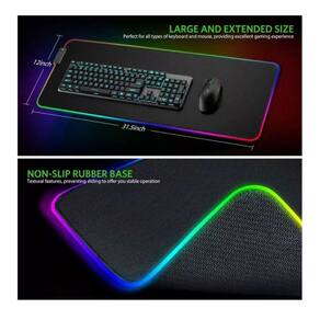 Mousepad Gamer Led Rgb Usb BLACK 80x30cm, o mousepad o acompanhará nas horas de jogo, oferecendo a precisão necessária ao mover o mouse sobre ele. Seu tamanho XL permite que você coloque, sem problemas, o mouse e o teclado, sendo antiderrapante em sua base (Superfície Ultra Suave). Esqueça os mousepad que se movem enquanto você joga, não é só para jogar, pois sua ergonomia permite que você trabalhe confortavelmente. É feito com fibra ultrafina. Iluminação LED exclusiva, este mousepad tem 10 tipos de luz monocromática, criando um ambiente de jogo agradável por meio da seleção do modo de cores. Plug and Play por cabo USB (interno), sem necessidade de driver, os modos de LED podem ser facilmente alterados com o clique no botão. É um complemento muito bom para sua mesa de computador ou mesa de jogos. -Projetado por jogadores, ideal para jogar/trabalhar no escritório. -Espessura = 4 mm - Baixo atrito: superfície lisa para controle rápido e antiderrapante da base de borracha. -Otimizado para vários mouses e sensores de sensibilidade. -Luzes RGB: 14 modos de iluminação: inclui 7 tipos de luz monocromática, 1 tipo de RGB alternado, 2 tipos de respiração RGB, 3 tipos de operação RGB - Seu tamanho XL permite que você coloque o mouse e o teclado sem problemas. - É antiderrapante por baixo e permite deslizar suavemente por cima. -Medidas: 80x30x0, 4 cm