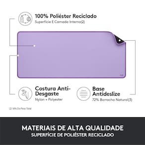 O Desk Mat da Logitech oferece o deslizamento perfeito e silencioso, sem esforço. É fabricado com poliéster reciclado para a superfície e camada interna. Uma base de borracha antiderrapante garante maior estabilidade.