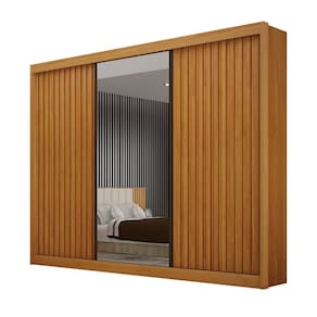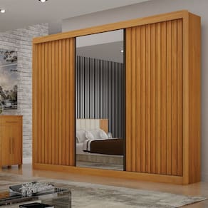 Três portas, sendo 1 espelhada e 02 ripadas, 06 gavetas internas (gaveta com puxador)
