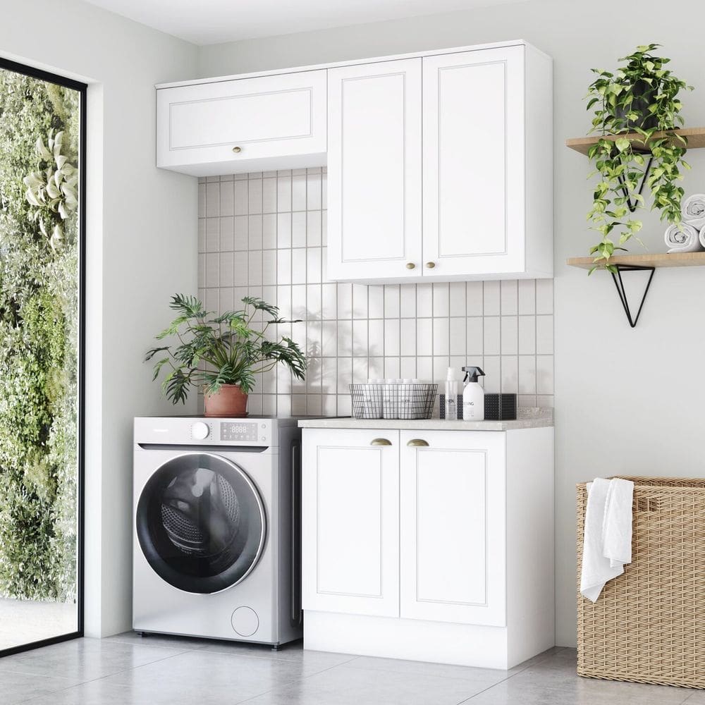 Lavanderia Modulada França 2 Armários Aéreos Kaiki Móveis Branco