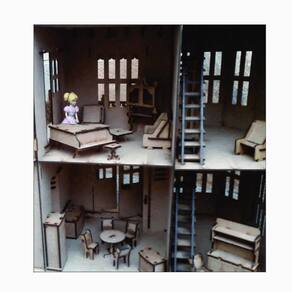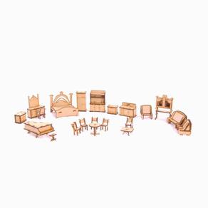 Móveis para casinhas debonecas escala polly mdf cru com 21 peças